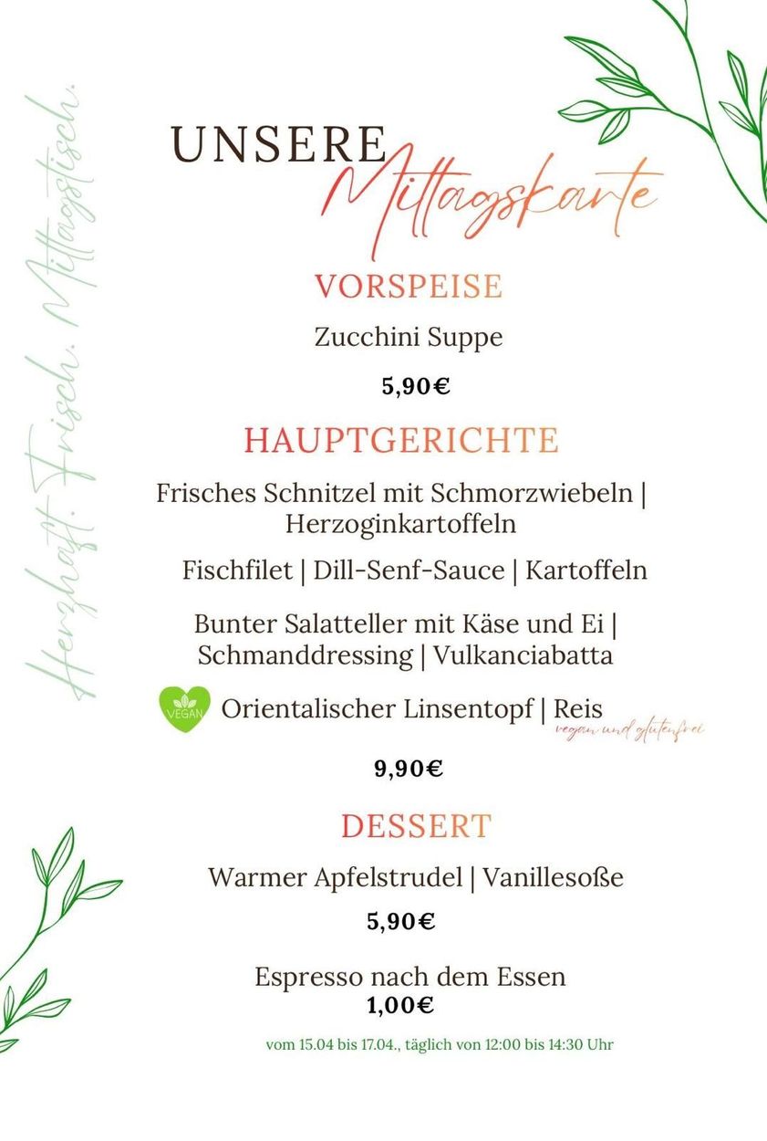 Wir servieren mittwochs bis samstags von 12:00-14:30 Uhr und ab 17:00 Uhr sowie sonntags von 13:00-14:30 Uhr und ab 17:00 Uhr warme regionale Küche