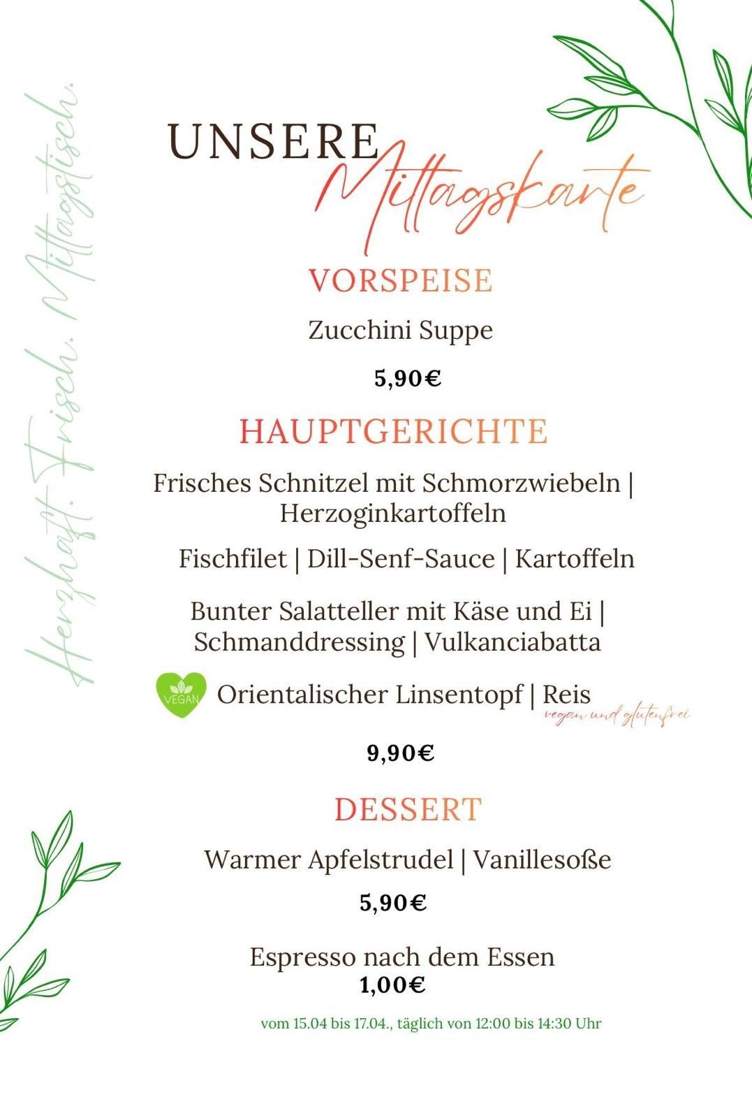 Mittagstisch von 12 bis 14:30 Uhr